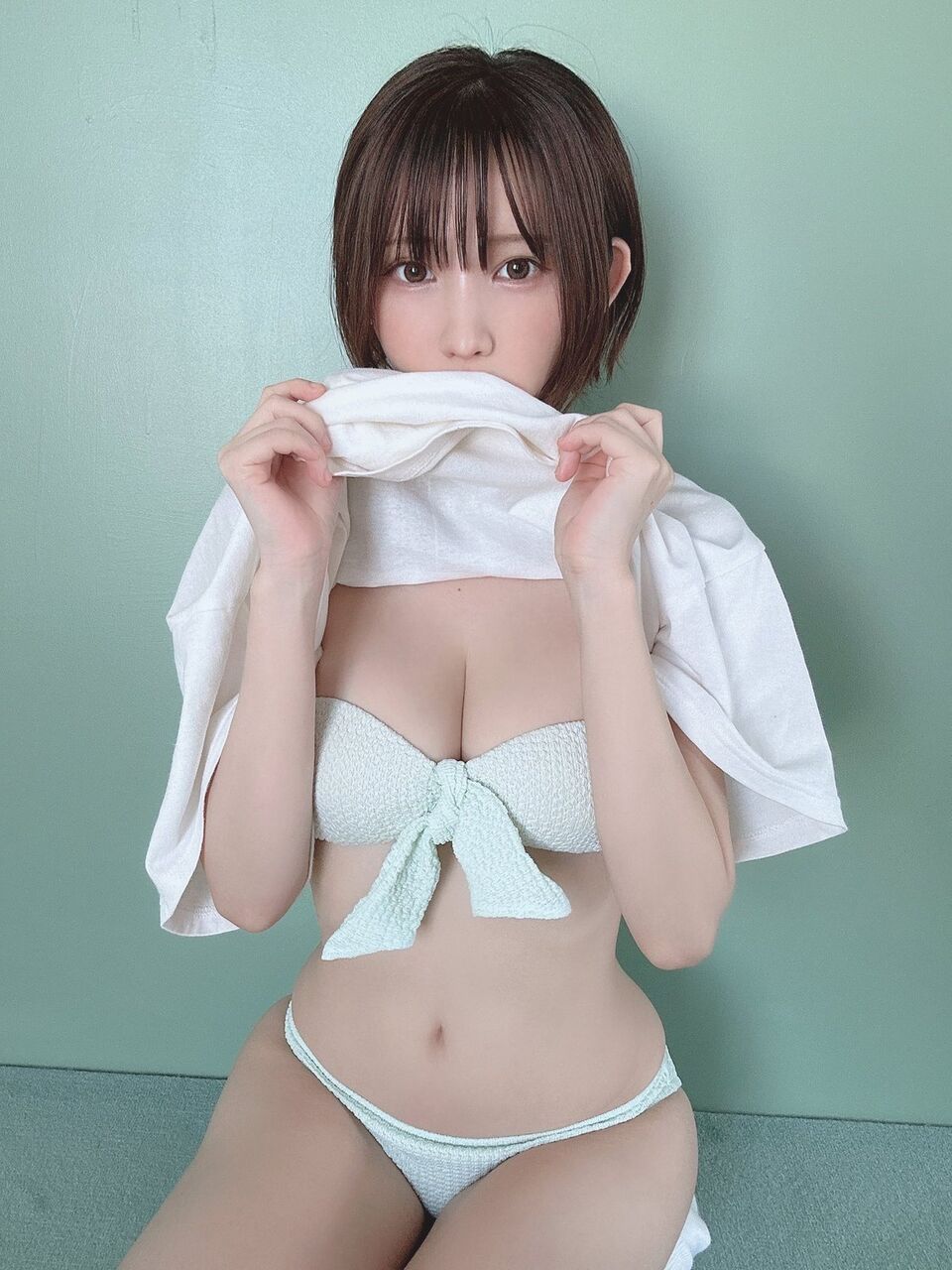 下に着た白ビキニから美ボディをあらわにする“あざとかわいい”1枚となっている。