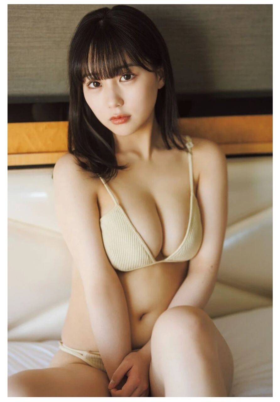 今回のグラビアは、優雅なホテルの一室やバスルーム、暖かい陽の光が差し込むプールで撮影に臨みました。12歳でHKT48に加入。