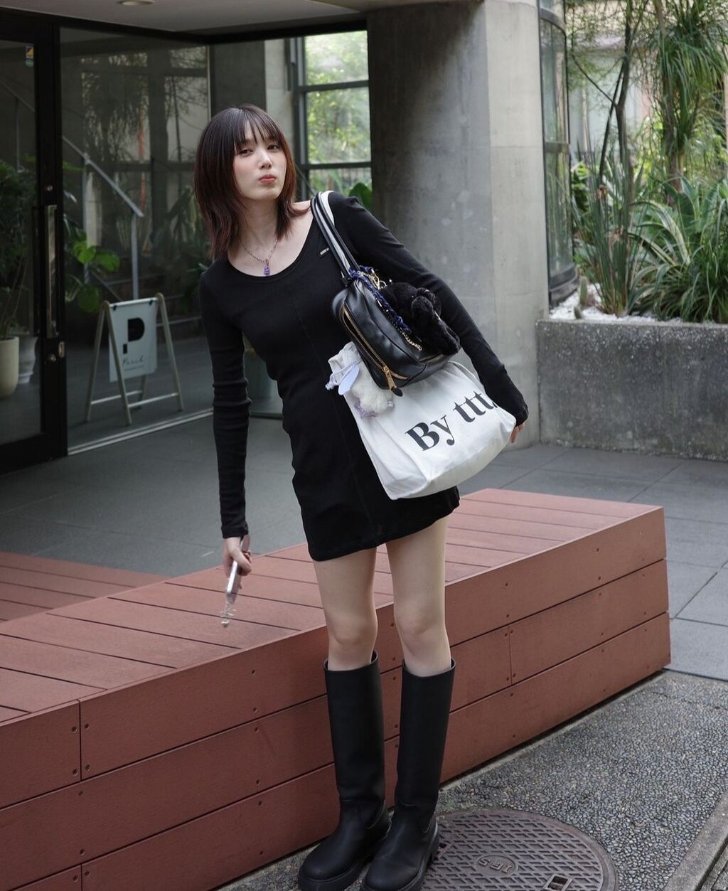 ミニスカート姿の写真とともにつづられた投稿には「黒で統一されたコーデ、より肌の透明感あがって最強です」「黒一色映える白い肌」「肌めっちゃ奇麗ですね」