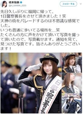“「先日久しぶりに福岡に帰って、1日警察署長をさせて頂きました!笑」