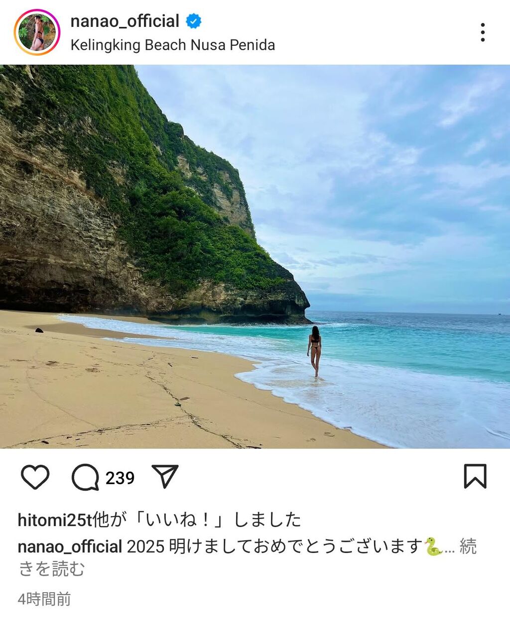 | 「すんごいスタイル…」菜々緒、Tバックのビキニショットにフォロワー歓声「菜々緒様がハマりすぎ」「綺麗 目福」 女優でモデルの菜々緒(36)が4日、自身のインスタグラムを更新。新年のあいさつとともに公開したインドネシアでのビキニショットが反響を呼んだ。 「… (出典:) |