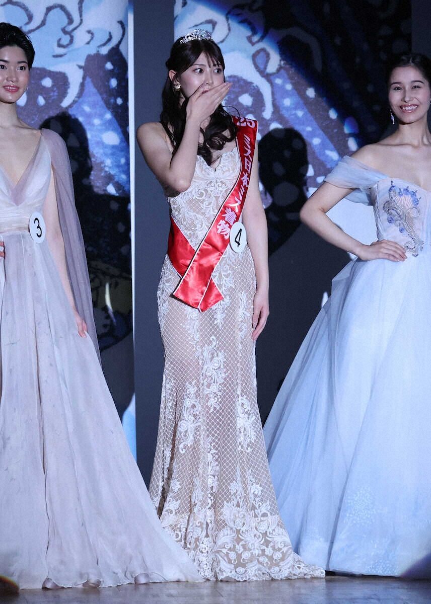 続けて「ここまで支えてくださった運営の皆様、講師の方々、そしてなにより他のファイナリストの11人のみんながいつもそばで支えてくれました。本当にありがとう」と感謝し、「この賞に恥じないようにミス日本として日本の未来を背負う気持ちで一生懸命活動に取り組んで参ります」と力を込めた。(中略)