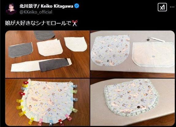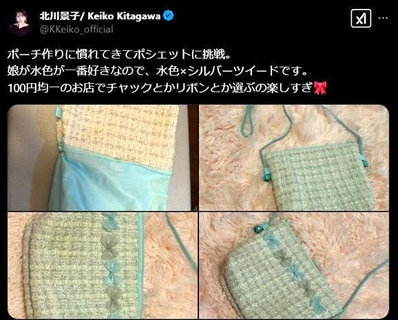 自身とスタッフによる公式X(@KKeiko_official)を更新。「娘が大好きなシナモロールで」娘のために小物入れ(ポーチ)を作ったことを報告したようです!