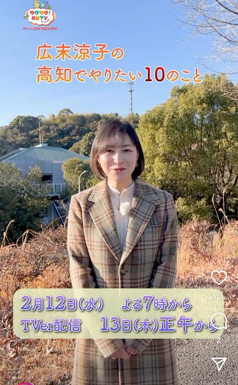 番組を見た人からは「なんか広末涼子がナチュラルな土佐弁で喋ってるローカル番組やってるんだけど」「『広末涼子の高知でやりたい10のこと』 すんごい涼子ちゃんキレイ」「まだまだ若いし綺麗やなぁ」「高知の星 がんばれ~」などの声がネット上にあがっている。