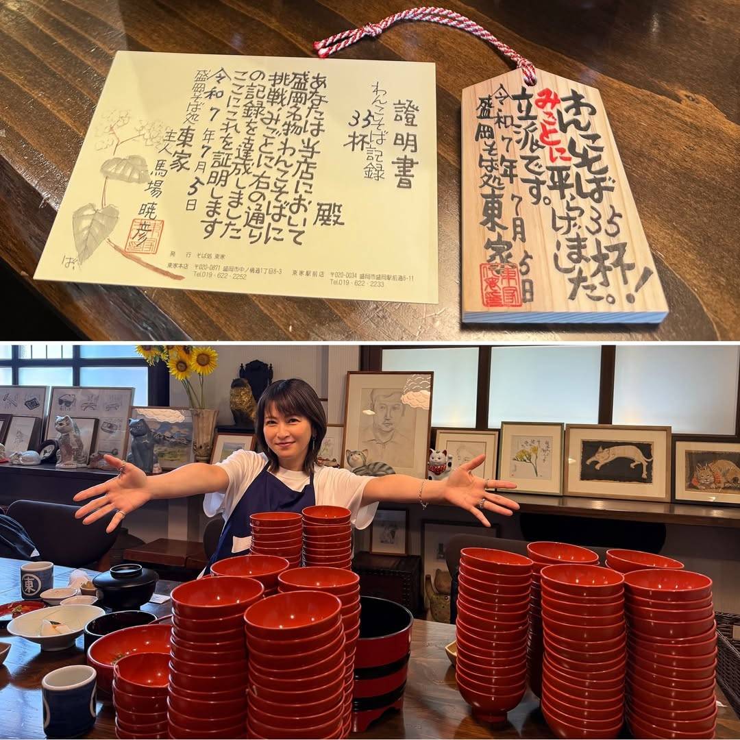 5日に岩手・盛岡市民文化ホールで「2025 森高千里コンサートツアー“あなたも私もファイト!!”」を開催した森高は、盛岡市を散策。「わんこそばを食べて気合いを入れてきました!」と綴り、「そば処 東家(あずまや)」を訪れた様子を投稿した。