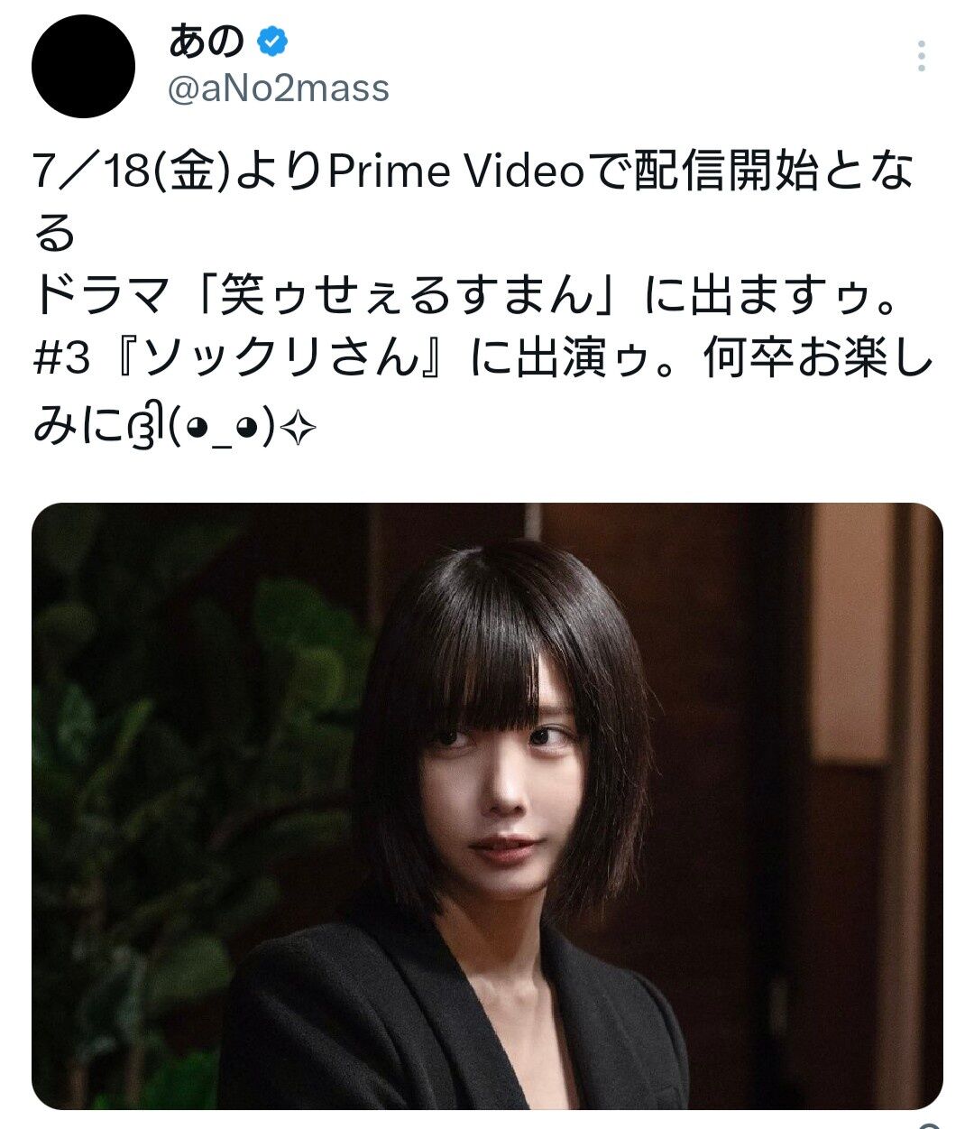 | あのちゃん「何卒お楽しみに」お知らせ投稿にSNS沸く「マジか!」「嬉しすぎる」 …“あのちゃん”の愛称で知られる歌手でタレントの「あの」さんが7月10日にXを更新。実写ドラマ『笑ゥせぇるすまん』(制作:テレビ東京)に出演することを明かしました。 (出典:) |