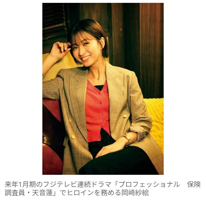 【驚き】まじでぇ❕女優・岡崎紗絵 フジの連ドラで初ヒロイン! 潜入七変化 来年1月スタート『プロフェッショナル 保険調査員・天音蓮』wwwwwwwwwwww❕