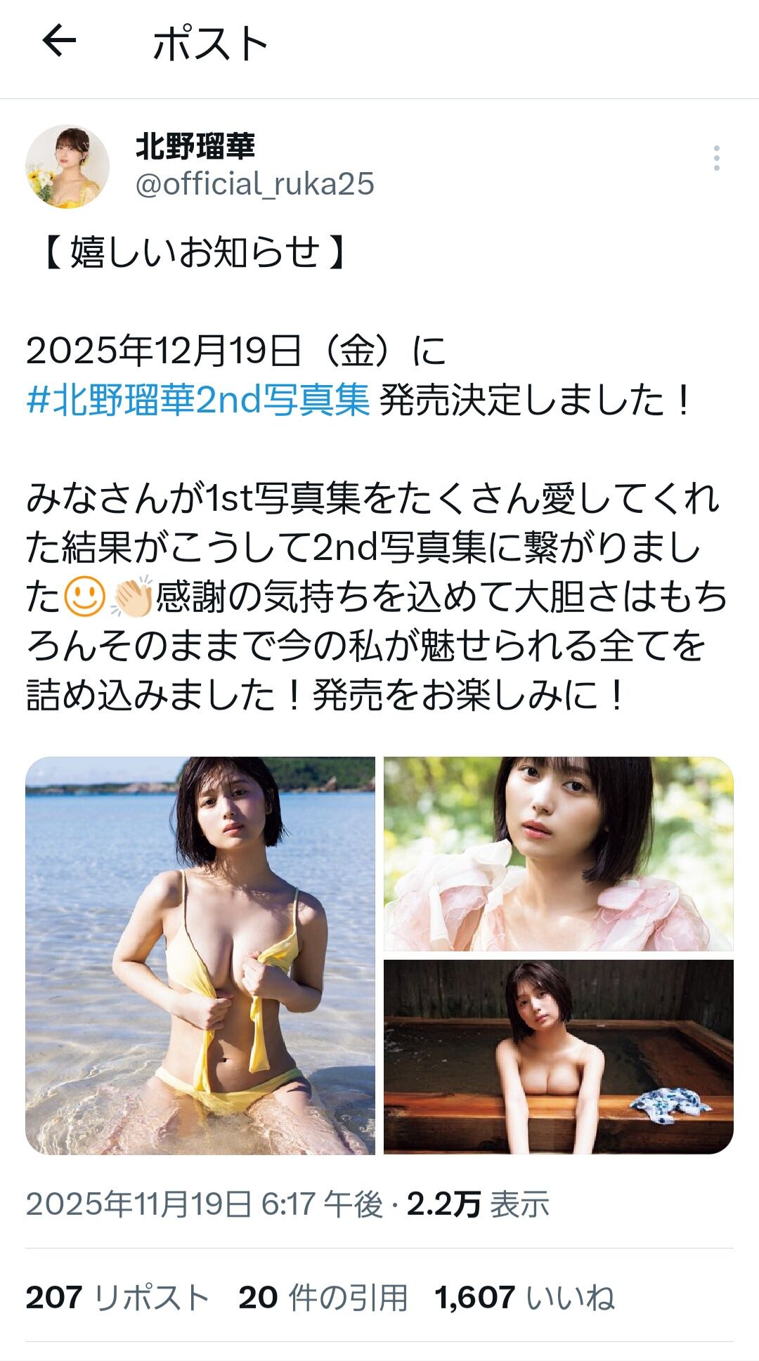 【必見】まじでぇ❕北野瑠華さん2nd写真集の発売が決定!!wwwwwwwwwwwwwwwww❕