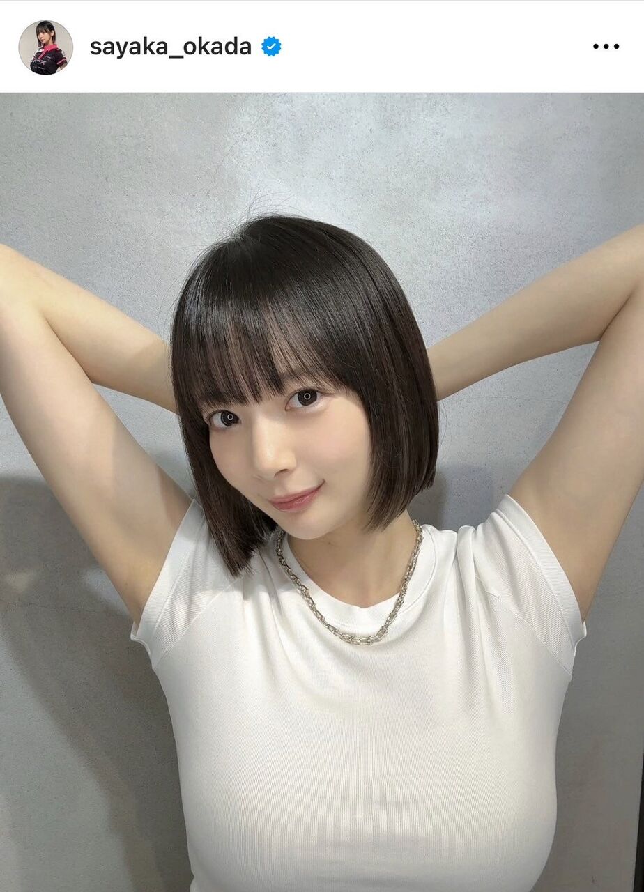 オフショットかアザーカットかは不明だが、岡田は”サービス”ショットを惜しげもなく公開。ほぼ同時更新のストーリーズで購入方法も案内している。