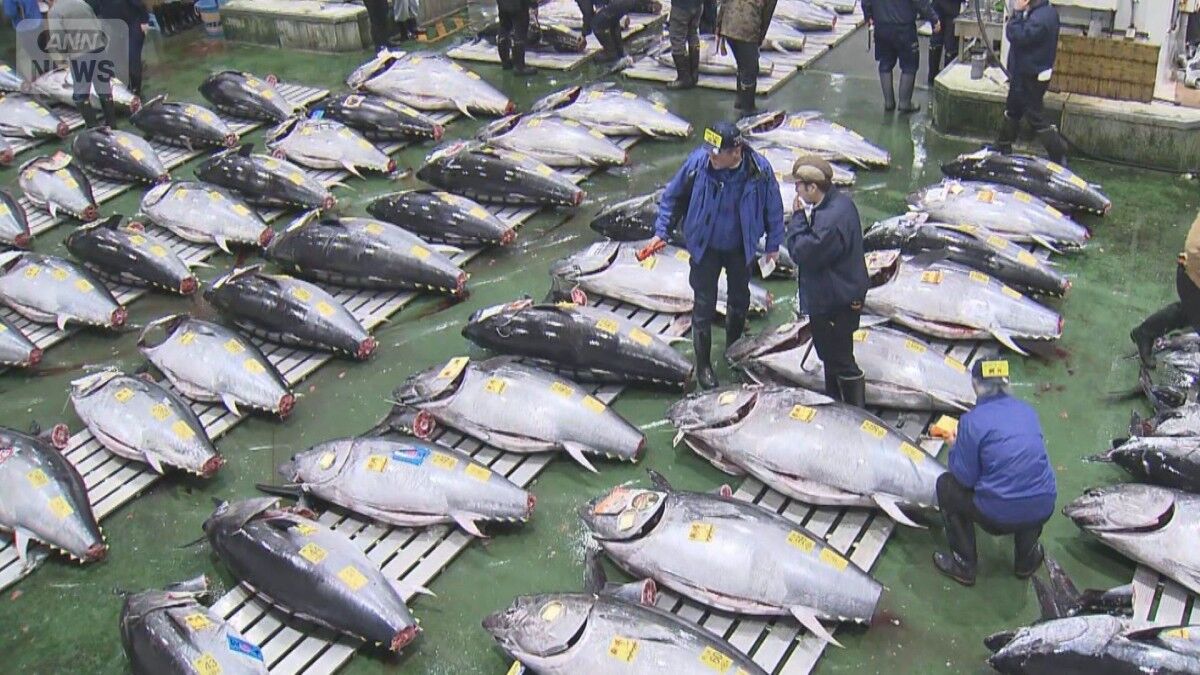 東京都江東区の豊洲市場で5日早朝、新年恒例のマグロの「初競り」が行われた。