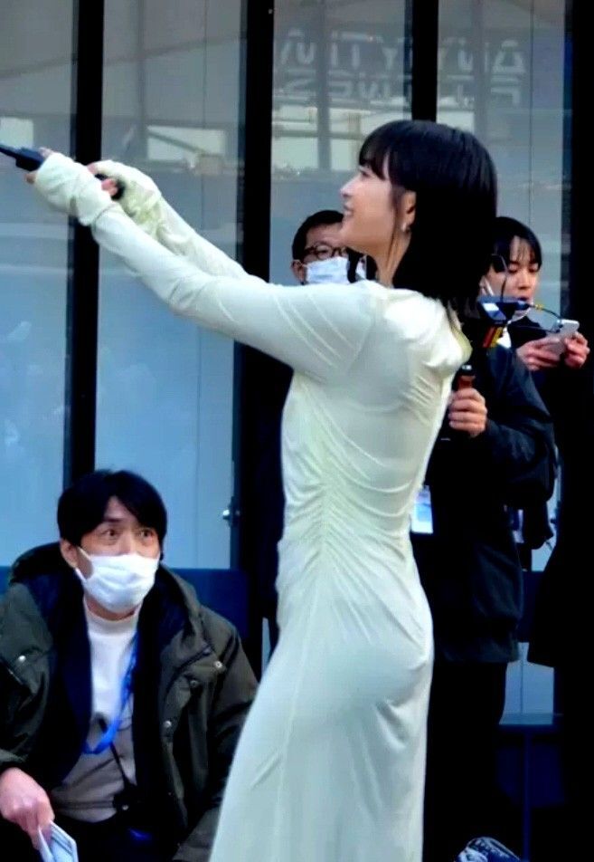 広瀬すずさんが着用したドレスは、彼女の美しいボディラインを引き立てる完璧なデザインですね。この写真からは自信に満ちた彼女の姿勢とその魅力が感じられます!