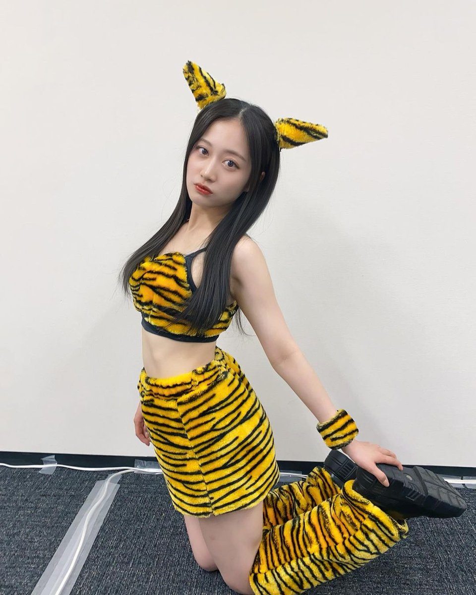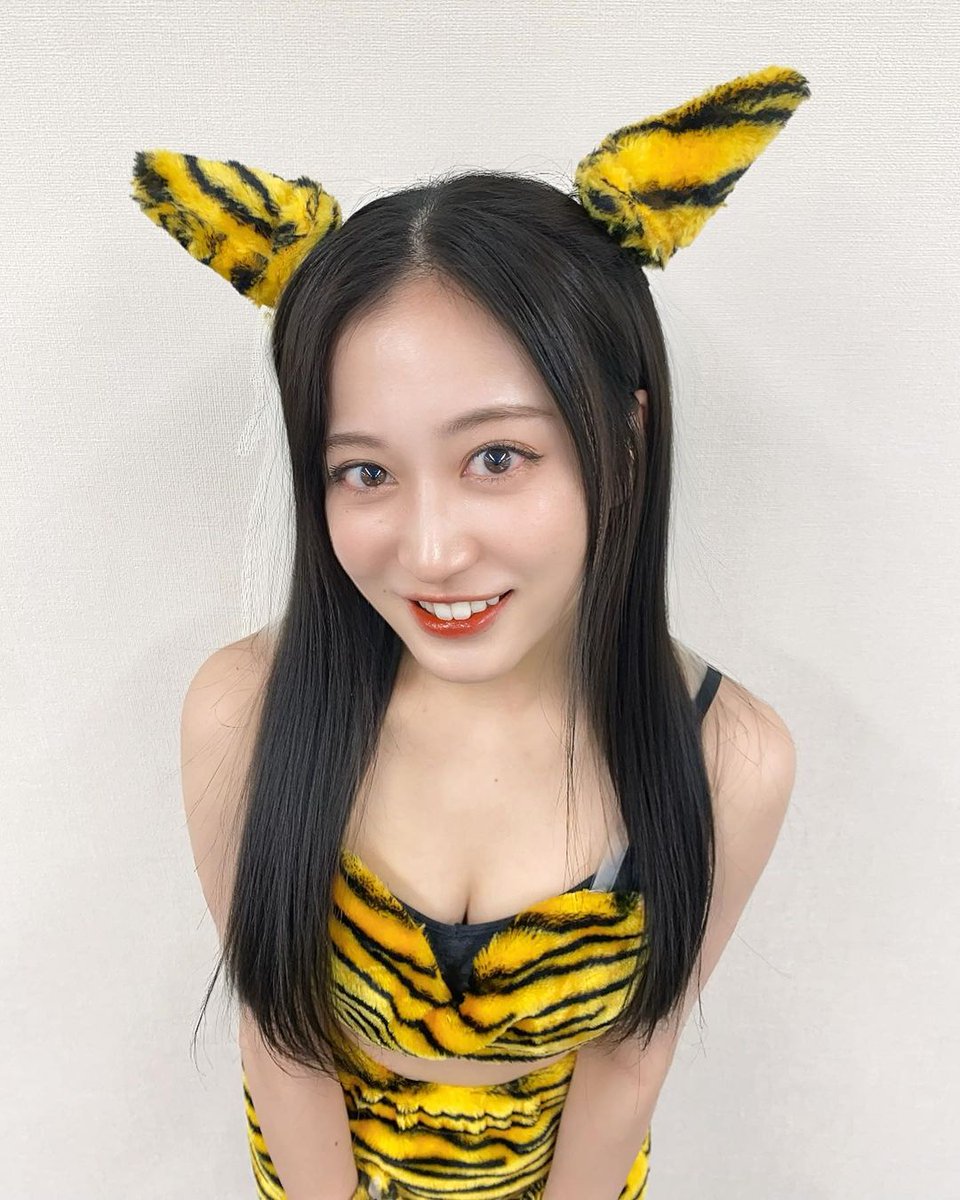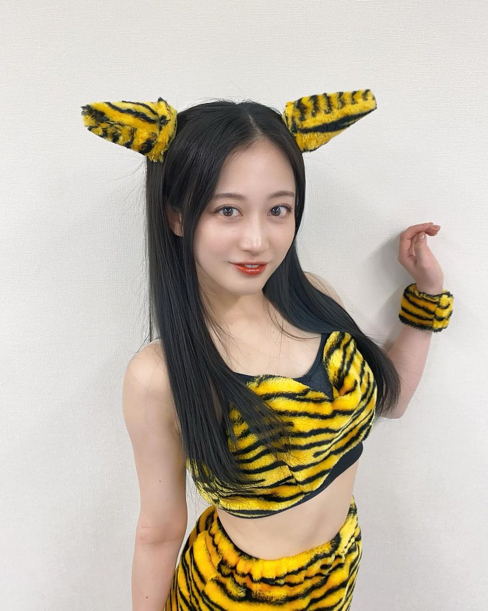 川上は握手会での衣装として、アニメ「うる星やつら」のラムちゃん風の虎柄のコスプレで、美バストやおなかをチラ見せするショットを披露。