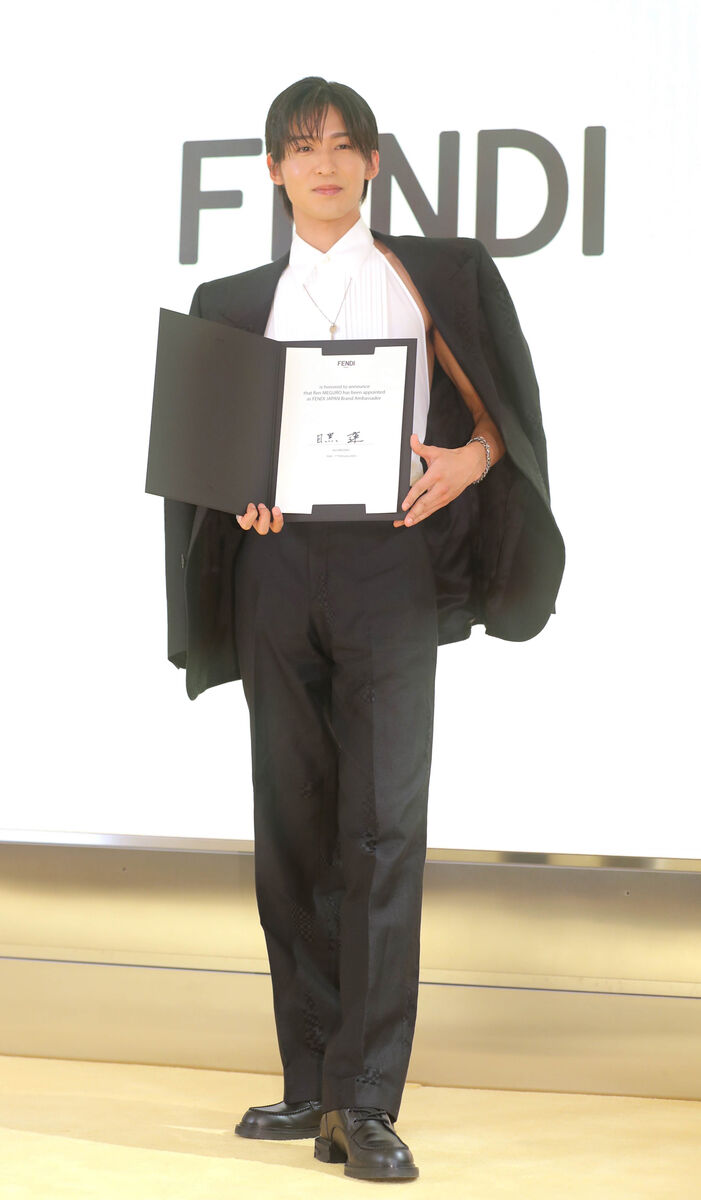 Snow Manの目黒蓮が1日、都内で行われた「FENDIジャパン ブランドアンバサダー」就任記者会見に出席した。