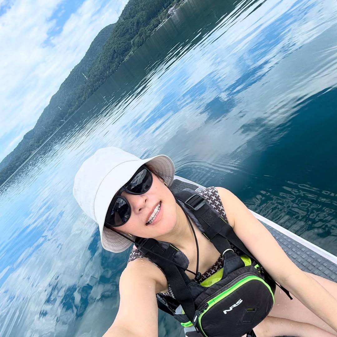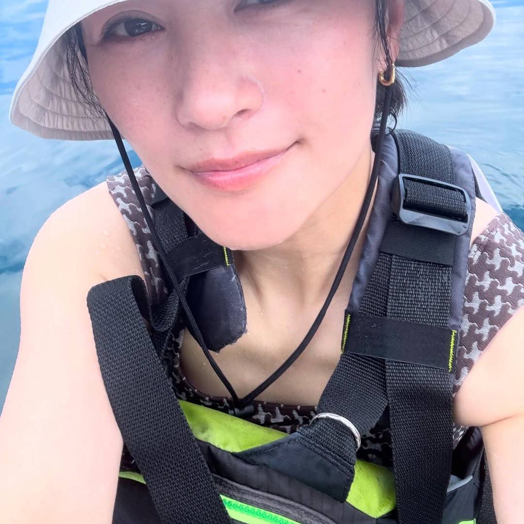 「いつもの場所でのSUP。初めて自分から入水」とスタンドアップパドルボードを楽しんだことをインスタグラムで報告。「最近の流行りっぽいものやかっこいい水着は似合わなくなってきたから ちょっとレトロな柄の可愛いワンピースを」と続け、水着姿でリラックスしている様子を披露した。