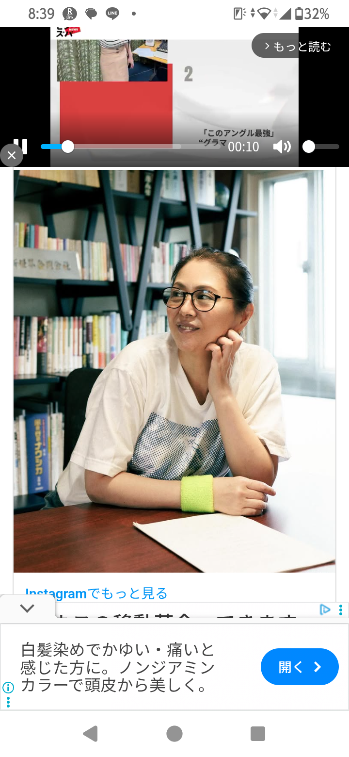 写真の小泉は、おでこを出したひっつめヘアにメガネをかけ、オーバーサイズの白いTシャツを着た、至ってシンプルな出で立ち。右手のリストバンドが多少のアクセントになっているものの、化粧っけもあまりなく、全体的にリラックス感が漂う1枚となっている。