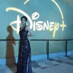 今田は、夜のディズニーリゾートでのショットを複数枚投稿。ライトアップされたお城を背景に、デコルテの美しさが際立つ胸元の開いたきらびやかなドレス姿を披露している。