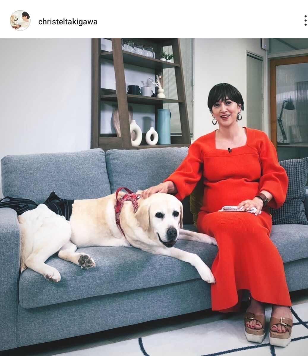 滝川は「明日、アリスさんと一緒に番組に出演します お時間の許す方、ぜひ」と紹介し、愛犬・アリスとの2ショットをアップ。妊娠中の大きなおなかが分かる鮮やかなオレンジ色のワンピース姿で、ソファに腰掛け微笑んでいる。