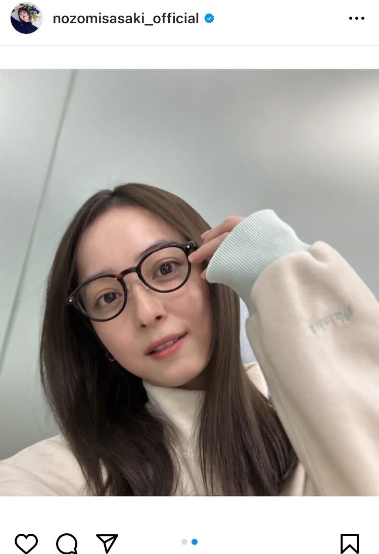 インスタグラムに「メイクするお仕事以外の時と、 プライベートで、急ぎの時は、とりあえずメガネとリップのみで、慌てて家を飛び出します。笑」とつづり、スッピンでほほえむ写真を載せた佐々木。