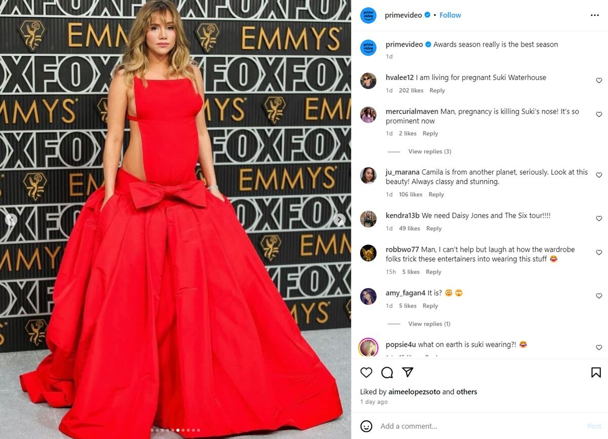 一方、「あなたのスタイルの中でこれが一番き」「あなたはいつも本当にすてき」「何てホットなママなんだろ」と肯定派も。また「おなかが大きくなってる!」「ロバート・パティンソンの赤ちゃんが!」「赤ちゃんが待ちきれない! ドレスは燃やして!」とおなかの赤ちゃんが成長していることを喜ぶ声や、それに混じってちゃっかりドレスを批判する声も見られました。