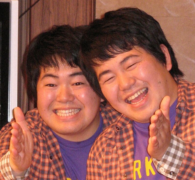 双子のお笑いコンビ「ザ・たっち」のたくや(左)とかずや