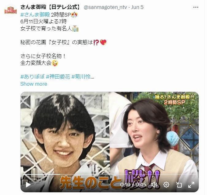 11日の日本テレビ「踊る!さんま御殿!!」では、「女子高で育った有名人SP」が放送され、出演女子の出身高校と当時の写真が紹介された。
