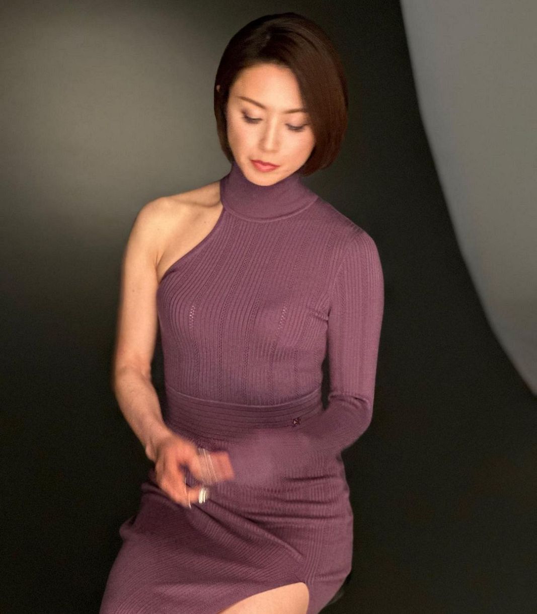 酒井法子さんのニットワンピ姿、とってもおしゃれですね!肩出しのデザインがセクシーで、彼女の美しさを引き立てています。このカバーガールの写真は、本当に永久保存したくなります!