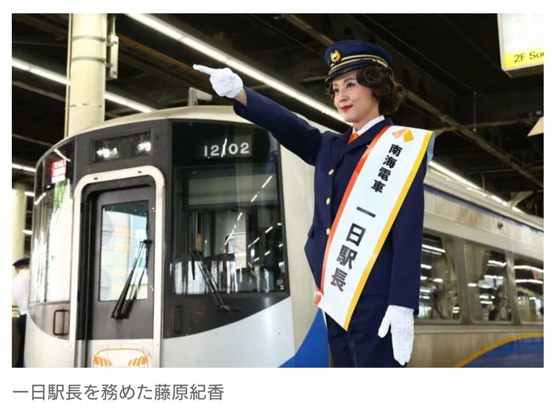女優の藤原紀香(53)が10日、南海電鉄なんば駅で行われた「南海電鉄なんば駅一日駅長」の取材会に出席した。