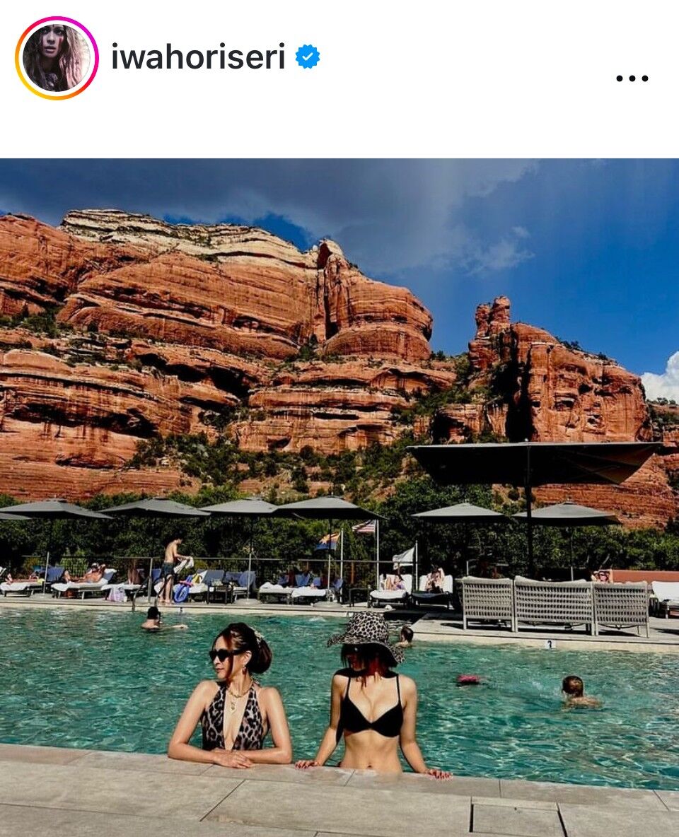 ロックバンドGLAYのギタリスト・TAKURO(53)の妻でモデルの岩堀せり(47)が2日、自身のインスタグラムを更新。長女(16)との水着姿の親子ショットを公開した。