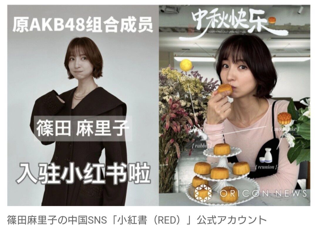 元AKB48でタレントの篠田麻里子が18日、中国版インスタグラムと言われるSNS「小紅書(RED)」に公式アカウントを開設。