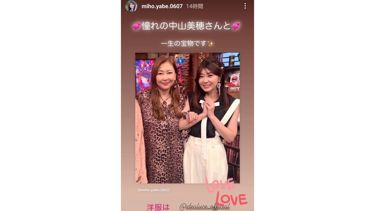 中山美穂の大ファンだという矢部美穂(右)と共演。矢部美穂のインスタグラム(@miho.yabe.0607)のストーリーズより