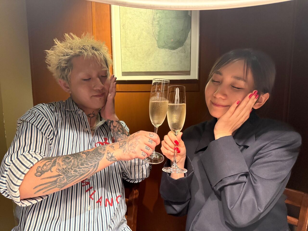と、ikuraと2人でシャンパングラスを手に、乾杯する写真をアップした。Ayaseのポストには多くの祝福メッセージが寄せられたが、一方で、Ayaseのビジュアル変化に驚く声が多くあがった。