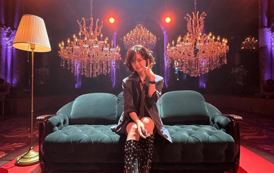 出演後にはジャケットにミニ丈のボトムス、スタッズブーツを合わせた衣装でソファに座る姿を投稿し、抜群のスタイルを披露した。