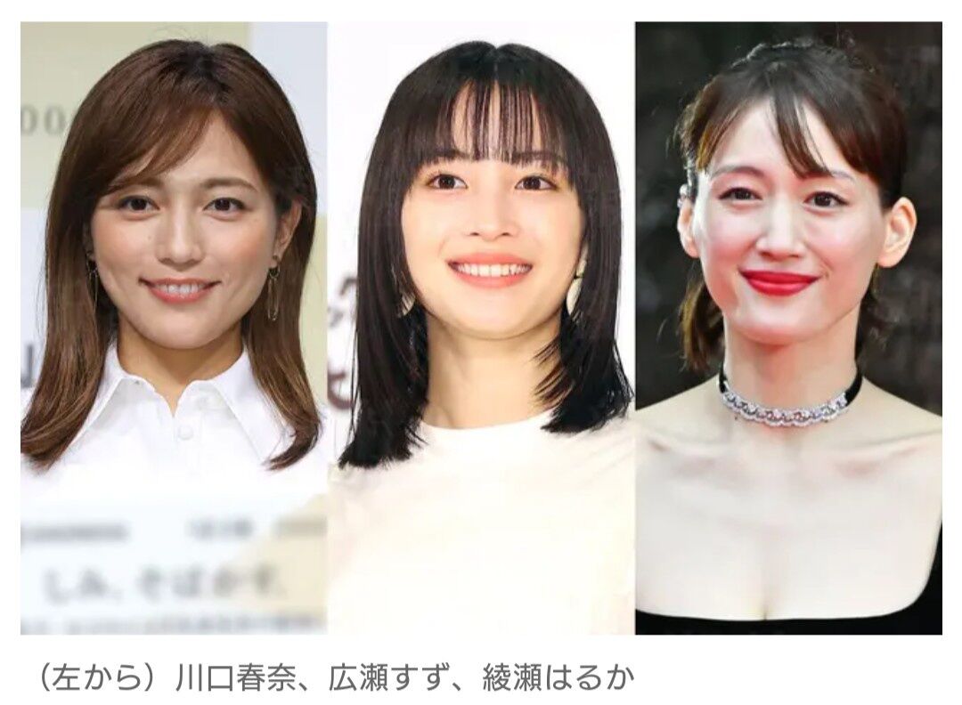 川口春奈がトップ。もっとも、一番稼いでいるのは契約者数9社の綾瀬はるか(39)ということで芸能関係者の見方は完全に一致している。