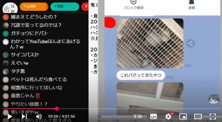 今回コレコレにタレコミを寄せたのは、飯島の関係者の代理だという女性2人です。鳥獣保護管理法違反や動物への残虐行為など、いくつもの問題行動を、LINEのスクリーンショットや写真を提示して告発しました。
