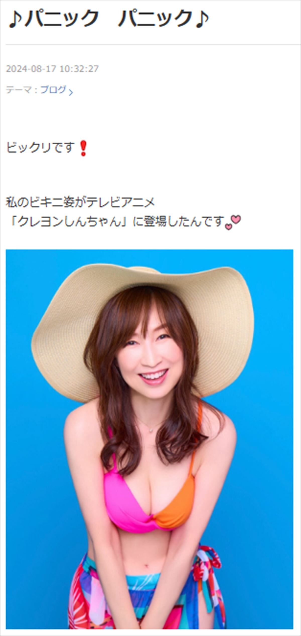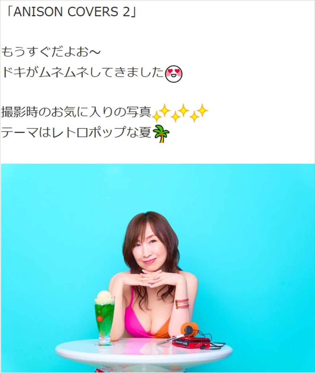 昨年8月にリリースしたアルバム「ANISON COVERS 2」で34年ぶりの水着姿を披露した森口。ブログ、エックスでも大胆な水着ショットを公開し