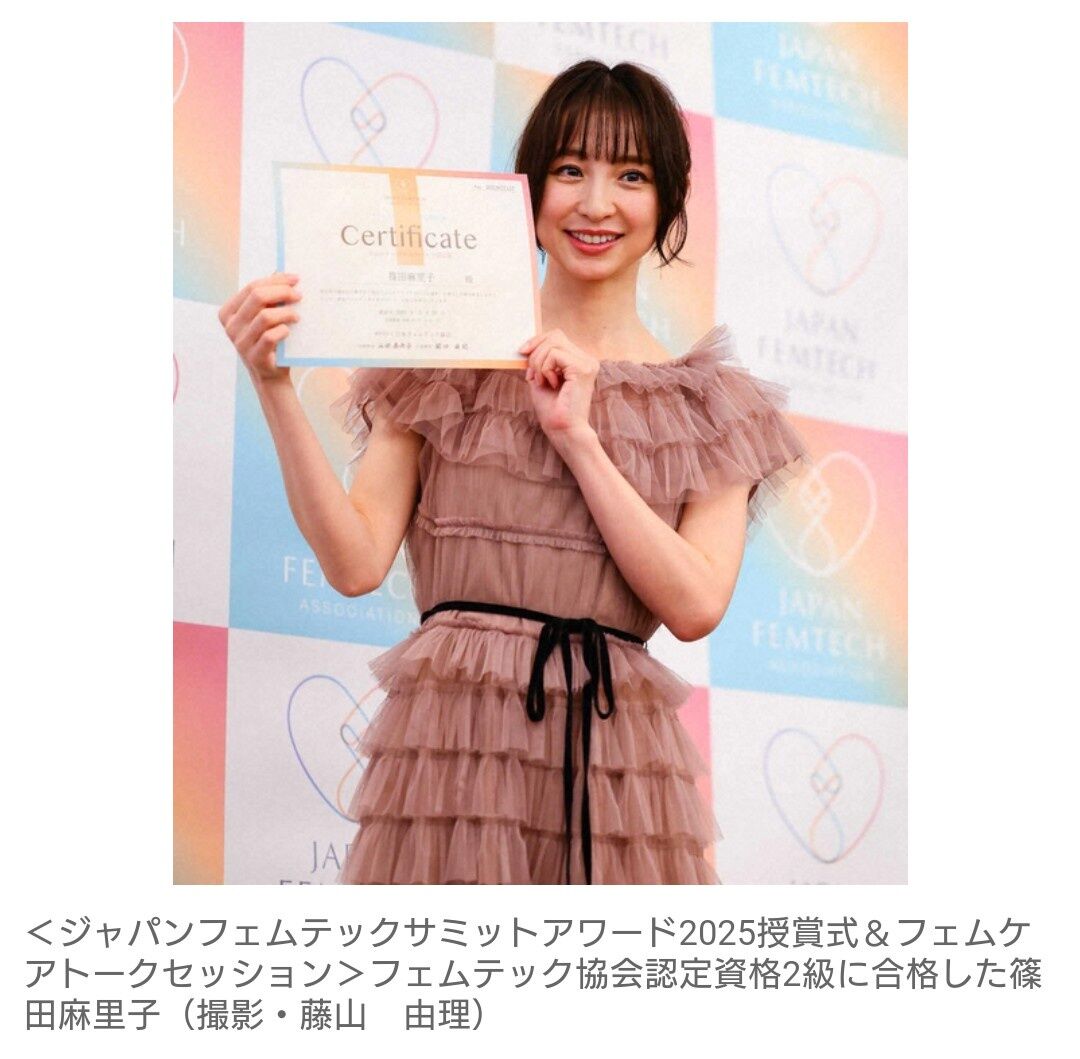 女優の篠田麻里子(38)が21日、都内で日本フェムテック協会主催の「ジャパンフェムテックサミットアワード2025」の授賞式に出席した。