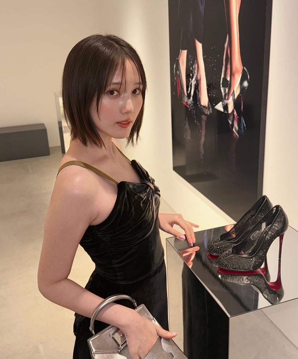 「『クリスチャンル*ン』と『メゾンマルジェラ』の初コラボレーションによるコレクションローンチイベントに行ってきました!」と書き出した上で、シックな黒のキャミワンピ姿を公開。デコルテは全開だった。