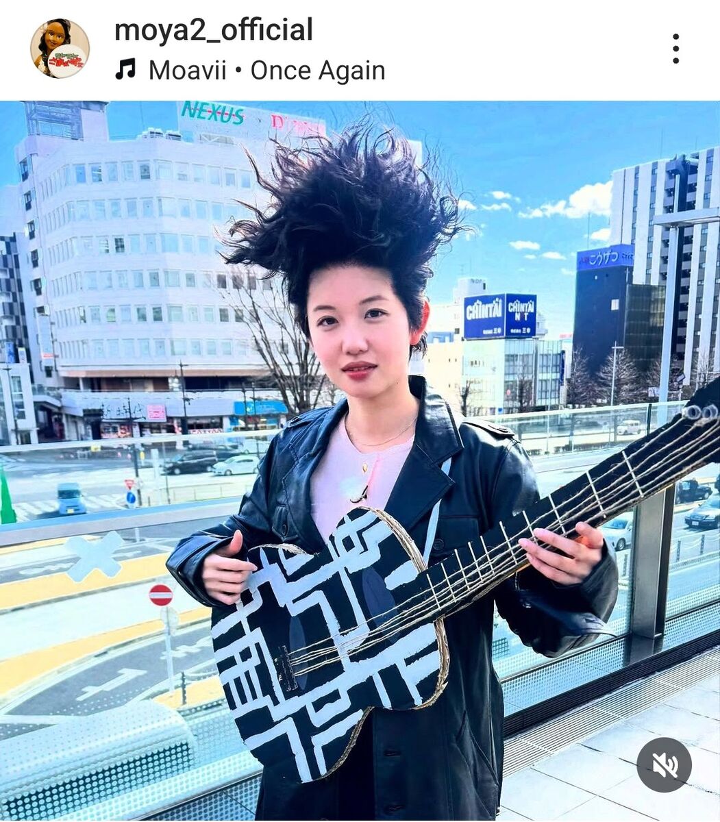 田中アナは、段ボールで作られたギターの模型を肩から下げて、ヘアスタイルや衣装もロックに変ぼう。写真を見たフォロワーは「誰ですか?!」「誰?www」「インパクトありすぎ!」