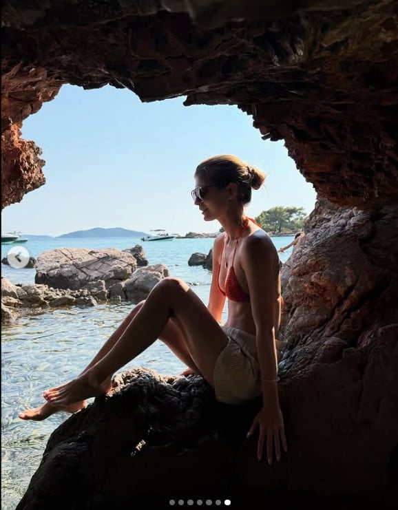 マギーは「Getaway trip」「ちょいと夏休みしてからかえります」とコメントを添え、美しい海を背景に、布面積の少ない赤のビキニをまとった写真を投稿。引き締まったウエストや健康的に日焼けした肌が映えるショットに、リゾート感あふれる開放的な空気が漂っている。