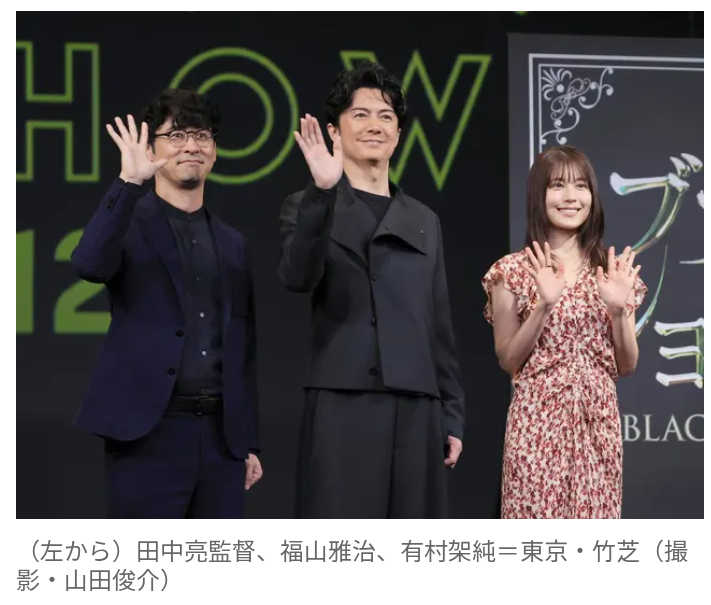 俳優で歌手、福山雅治(56)と女優、有村架純(32)が11日、東京・竹芝のポートホールで行われた映画「*・ショーマン」(田中亮監督、9月12日公開)の完成報告会見に出席した。