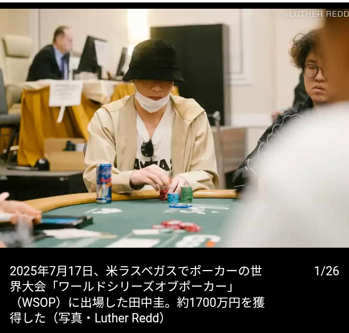 8月29日、『週刊新潮』が田中圭の世界を股にかけた“ポーカー旅”を報道した。田中はこれまで、韓国、ラスベガス、バルセロナと2カ月間にわたり、3カ国を旅しながらポーカーで賞金を“荒稼ぎ”したことがわかっている。