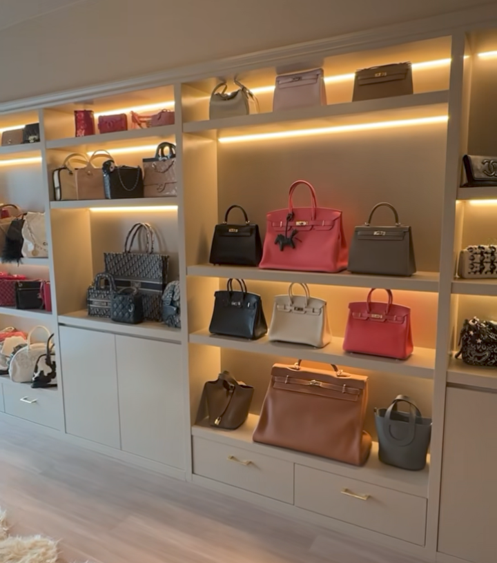 専有面積220平米を誇る都内の3LDK高級マンションの全貌が公開され、100着以上の私服や高級ブランド品が置かれた衣裳部屋の中には500万円相当のエルメスのバッグも。「とんでもない財力」とフォーカスされた。