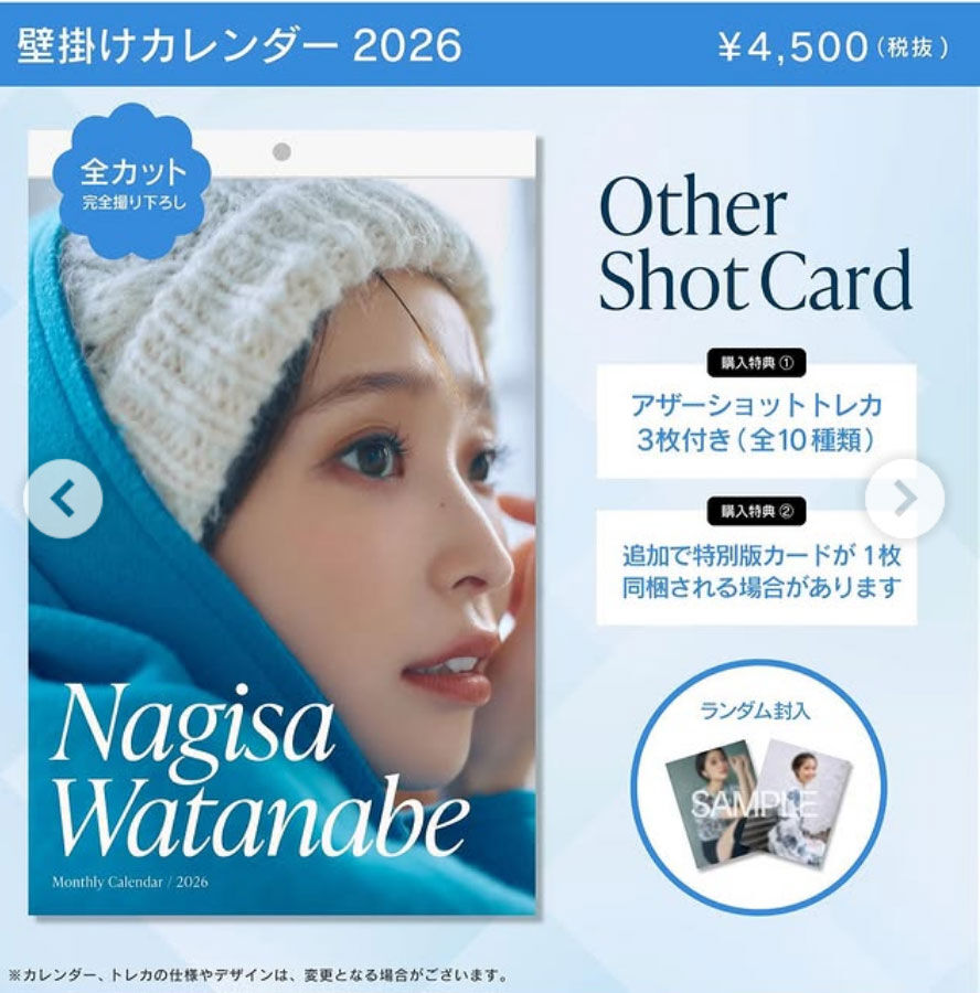 そして「また、メンバーシップLighthouse会員限定のセットもご用意しました。こちらはイベント参加権付きです。2026年をこのカレンダーとともに迎えてくだされば嬉しいです! 詳細は、渡邊渚オフィシャルサイトよりチェックしてください」と締めくくった。