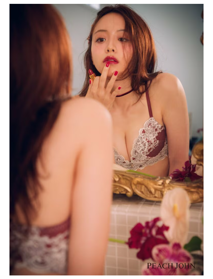 またピーチジョンの公式インスタグラムも森のランジェリーショットを多数披露。「きっと、恋に落ちる。森香澄が着る、心を奪うランジェリー」では透け感のあるゴージャスな下着姿を披露。