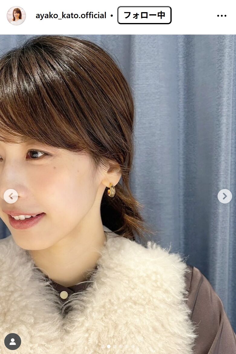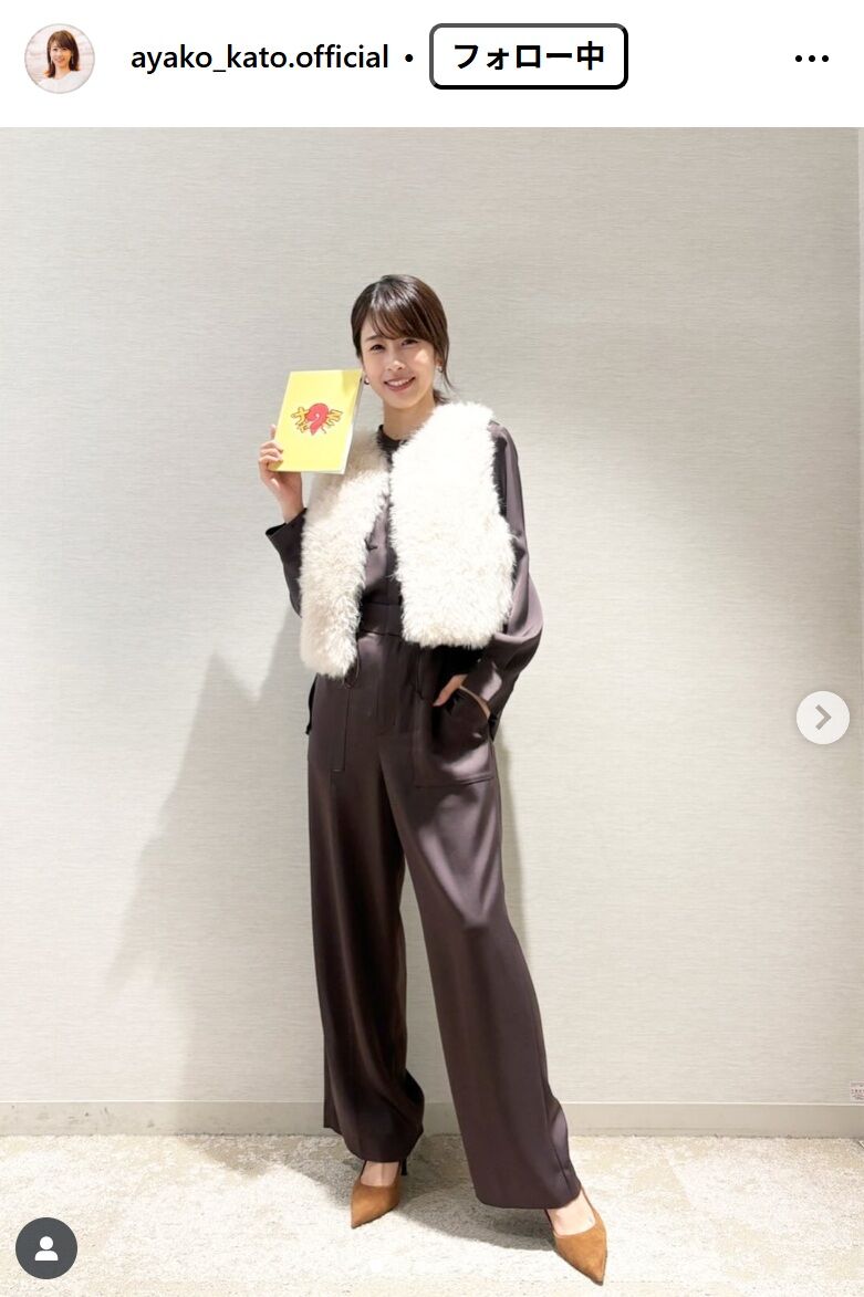 フリーアナウンサーの加藤綾子(40)が8日までに、自身のインスタグラムを更新。MCを務める番組出演での衣装を投稿した。
