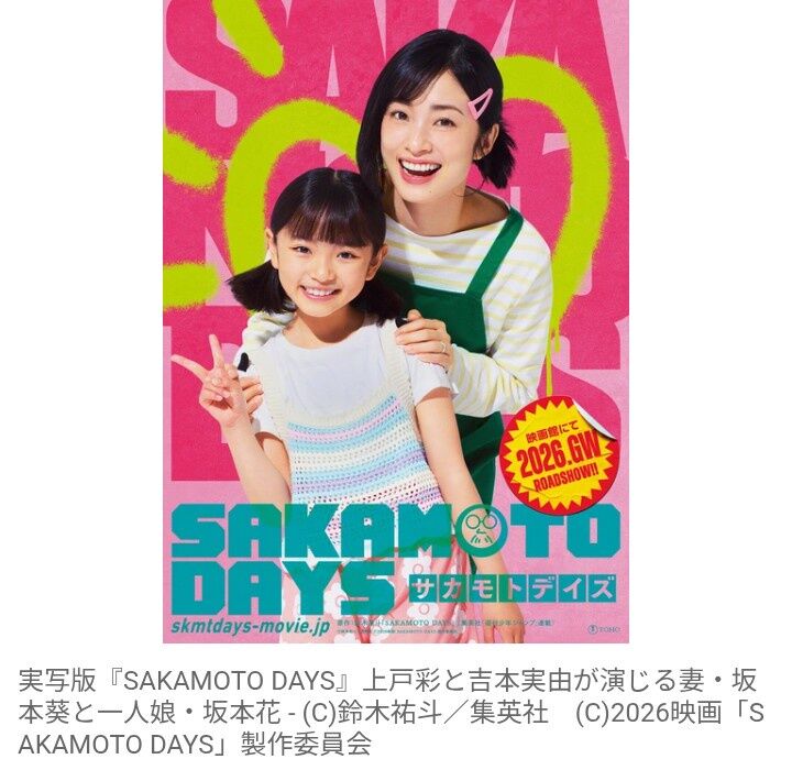 目黒蓮主演の実写映画『SAKAMOTO DAYS』の新キャストが11日に発表され、上戸彩が主人公・坂本太郎の妻・坂本葵を、子役の吉本実由が娘の坂本花役を務めることが明らかになった。
