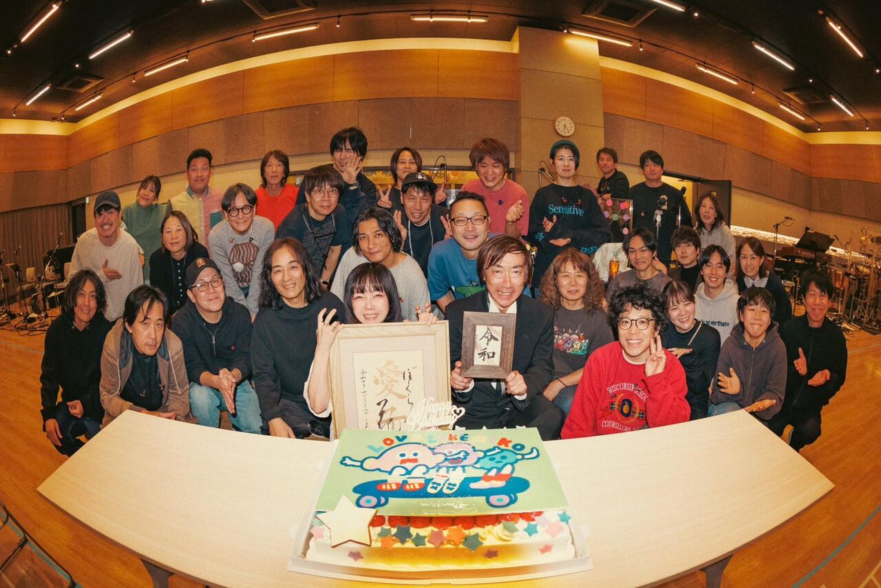 「今日50歳になりました!」と書き出し、「ぼくらの花 愛子」と書かれた額を手にした姿や、バースデーケーキを前にバンドのメンバーやスタッフらに祝福されるショットなど3枚の写真を投稿。
