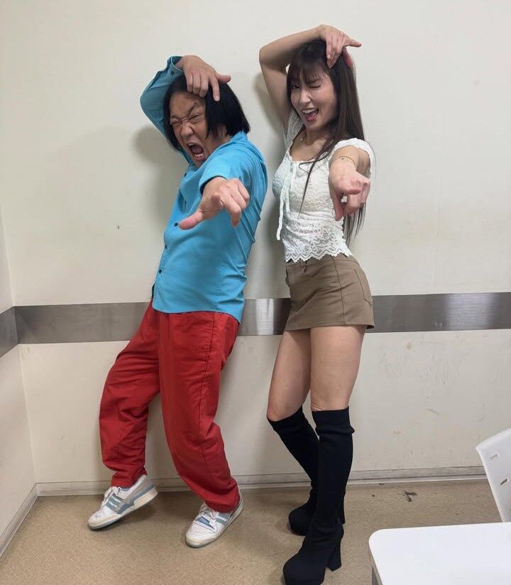 熊田曜子さんのミニスカ姿、とても素敵ですね!永野ポーズとの組み合わせもユーモラスで、思わずクスッと笑ってしまいました。彼女のセンスとチャーミングな笑顔が、これまたいいアクセントになっています。ファンの皆さんも喜んでいることでしょう!