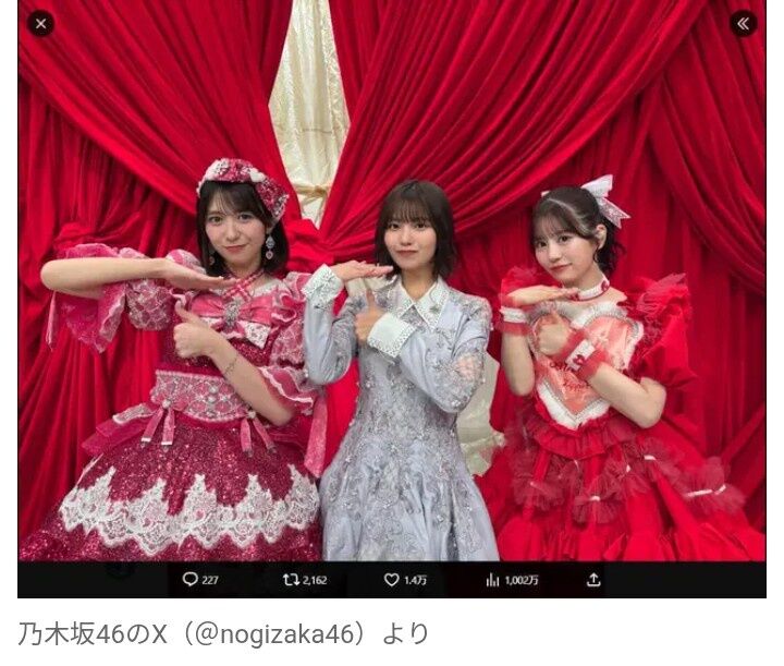 アイドルグループ「乃木坂46」の公式Xが2025年12月3日、メンバーの中西アルノさんが同日放送の「2025 FNS歌謡祭」第一夜(フジテレビ系)で出演することを告知した。