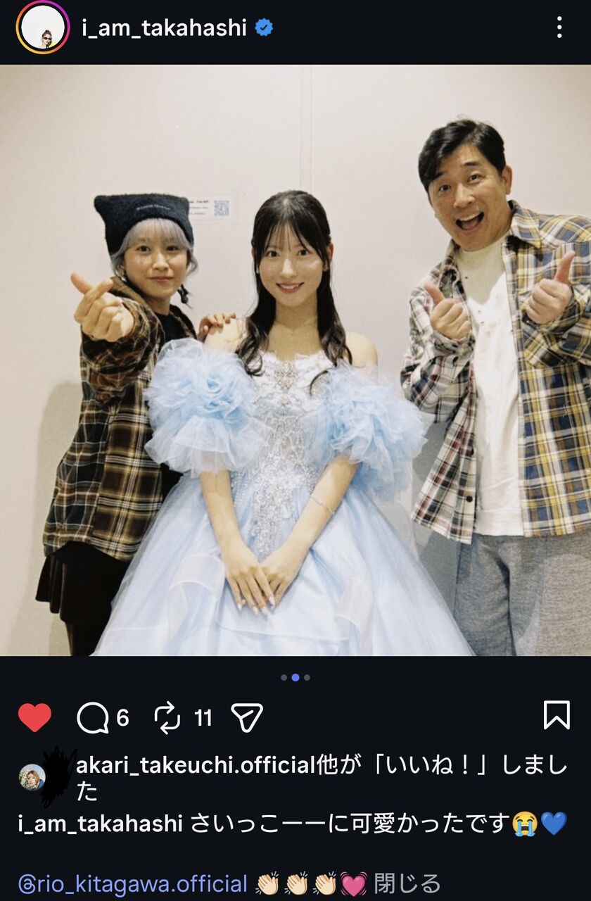 あべこうじさんと高橋愛ちゃんの素敵な写真が、北川莉央ちゃんとのスリーショットでさらに華やかになりました!この三人の笑顔は、見る人に幸せを届けてくれますね。